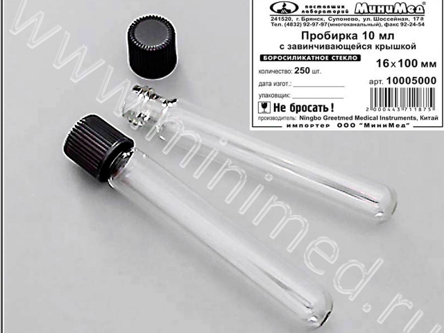 Пробирка с завинчивающейся крышкой разработана для химических, биологических и микробиологических лабораторных процедур. Изготовлена из боросиликатного стекла, круглодонная, крышка из бакелита выдерживает t до 300 град.