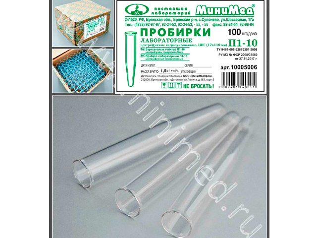 Пробирка изготовлена по ТУ 9461-008-52876351-2008 в соотвветствии с требованиями ГОСТ 1770-74.