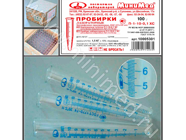 Пробирка изготовлена по ТУ 9461-008-52876351-2008 в соответствии с требованиями ГОСТ 1770-74.