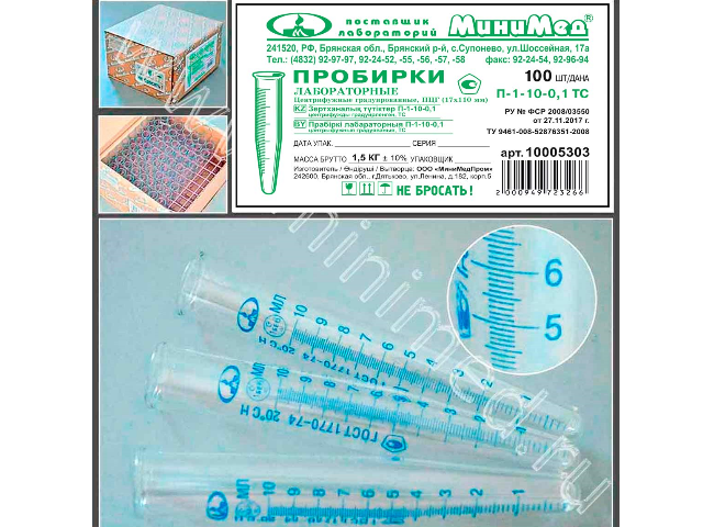 Пробирки изготовлены по ТУ 9461-008-52876351-2008 в соответствии с требованиями ГОСТ 1770-74.