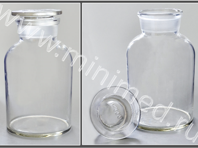 Склянка лабораторная 1000 мл из светлого стекла с широкой горловиной и притертой пробкой, уп.6 /24 шт