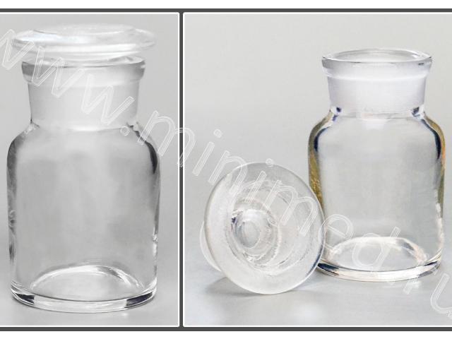 Склянка лабораторная 60 мл из светлого стекла с широкой горловиной и притертой пробкой, уп.12/144 шт