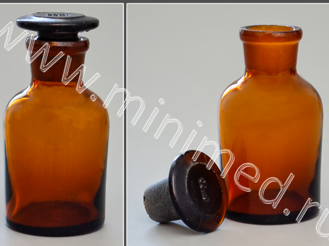 Склянка лабораторная 60 мл из темного стекла с узкой горловиной и притертой пробкой, уп.12/144 шт