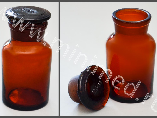 Склянка лабораторная 125 мл из темного стекла с широкой горловиной и притертой пробкой, уа. 12/72 шт