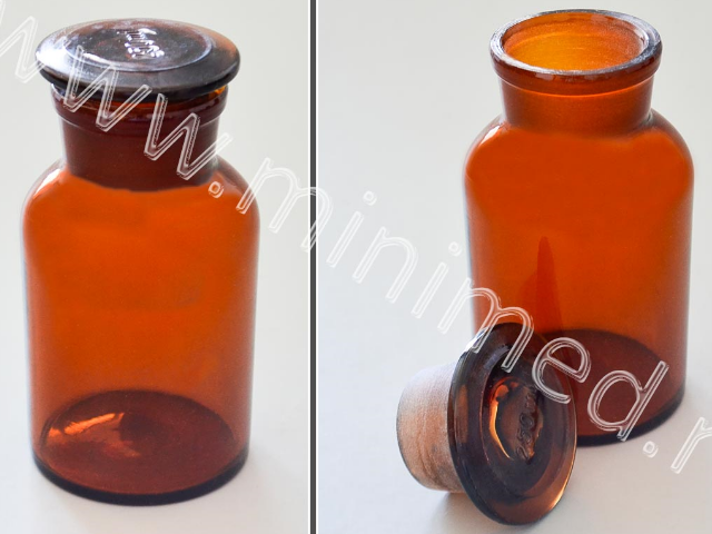 Склянка лабораторная 250 мл из темного стекла с широкой горловиной и притертой пробкой, уп.6/72, 48 шт