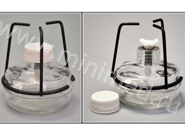 Спиртовка с металлической оправой для установки металлической сетки предназначена для подогрева открытым пламенем. Фитиль спиртовки изготовлен из хлопчатобумажного волокна, обеспечивающего ровное нетоксичное горение.