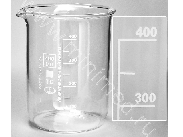Имеет ориентировочную шкалу. Изготовлен из стекла марки ТС по ГОСТ 21400-75.