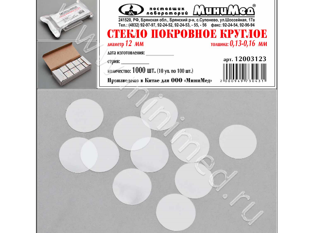 Стекло покровное круглое диам.12 мм,толщ.0,13-0,16 мм, уп.1000 шт.