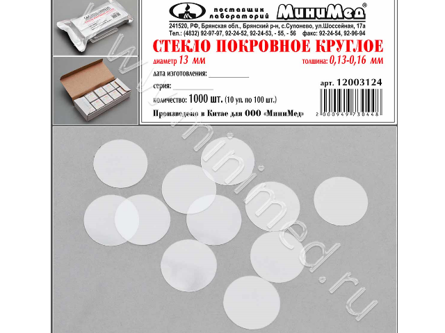 Стекло покровное круглое диам.13 мм,толщ.0,13-0,16 мм, уп.1000 шт.