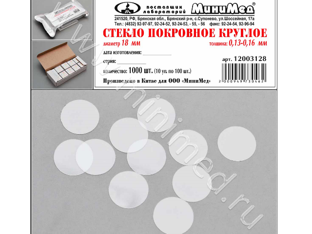 Стекло покровное круглое диам.18 мм,толщ.0,13-0,16 мм, уп.1000 шт.