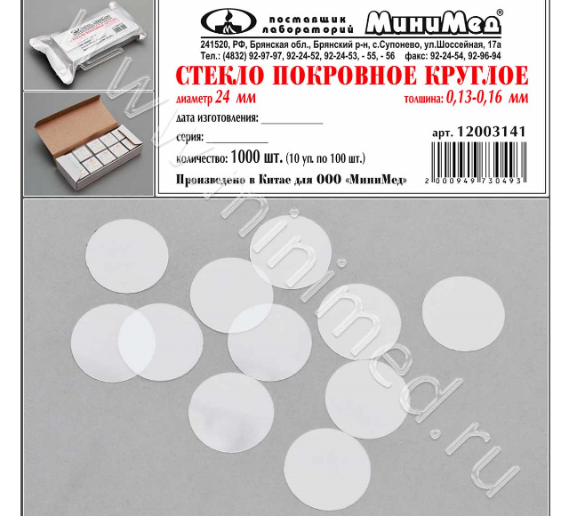 Стекло покровное круглое диам.24 мм,толщ.0,13-0,16 мм, уп.1000 шт./ кор. 50 000 шт.
