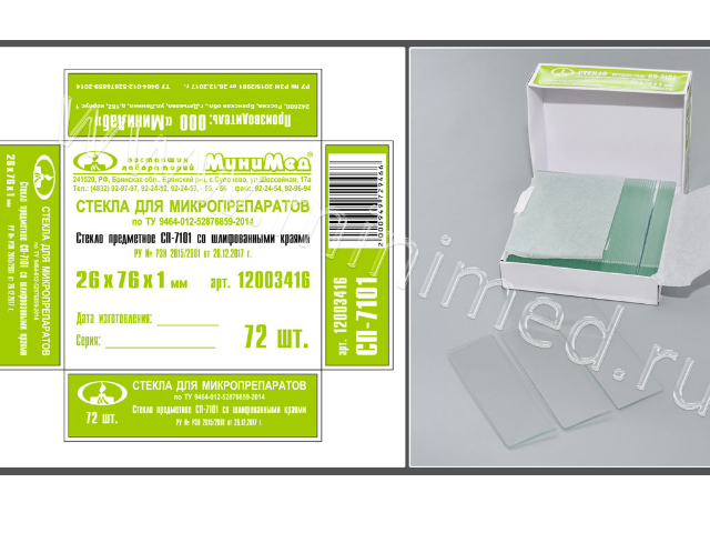 Разработано для автоматизированных и рутинных микроскопических процедур. Края стекла шлифованы. Изготовлено из прозрачного бесцветного силикатного стекла.