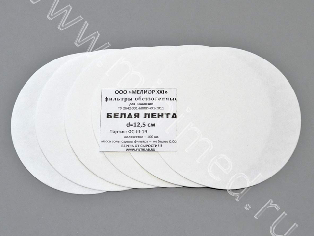 Фильтры обеззоленные "Белая лента" d 125мм, уп.100шт