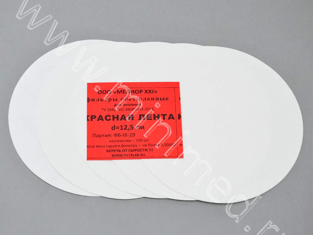 Фильтры обеззоленные "Красная лента" d 125мм, уп. 100 шт
