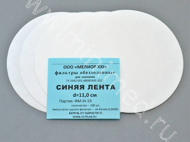Фильтры обеззоленные "Синяя лента" d 110мм, уп. 100 шт