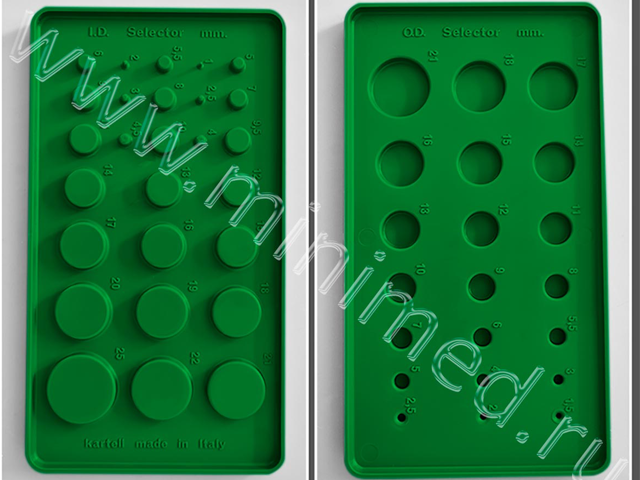 Набор предназначен для определения номинального наружного и внутреннего диаметра пластмассовых, стеклянных или резиновых трубок.
