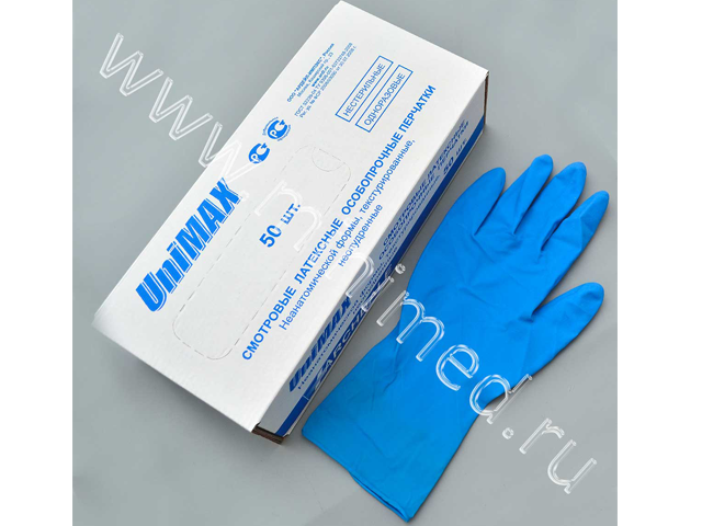 Сверхпрочные латексные перчатки UniMAX рекомендованы для манипуляций, связанных с повышенным риском (скорая помощь, патологоанатомические отделения и др.). Цвет - темно-голубой. Нестерильные. Форма универсальная (неанатомическая). Текстурированные. Неопудренные.