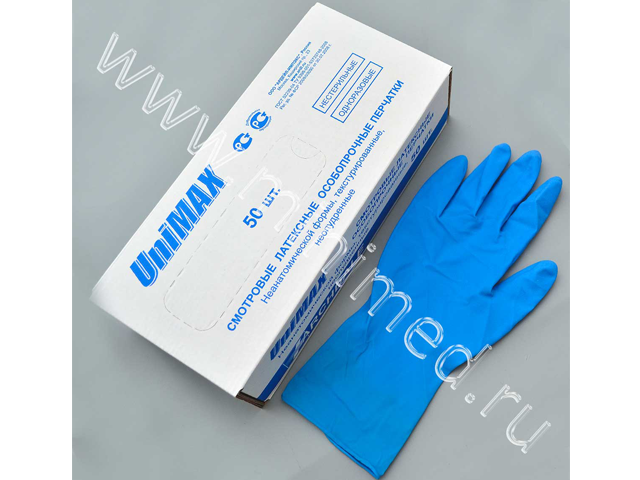 Сверхпрочные латексные перчатки UniMAX рекомендованы для манипуляций, связанных с повышенным риском (скорая помощь, патологоанатомические отделения и др.). Цвет - темно-голубой. Нестерильные. Форма универсальная (неанатомическая). Текстурированные. Неопудренные.