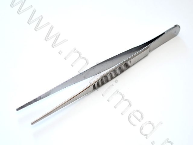 Предназначен для захвата и удержания различных тканей. Каждый пинцет состоит из двух стальных пластин (браншей), обладающих пружинящими свойствами. Одни концы пластин спаяны (или сварены) между собой. Противоположные концы, расходятся клиновидно, называются лапками или губками. С наружной стороны пластин в средней части находятся опорные пластины для пальцев, имеющие продольные мелкие рифления или насечки. Пинцет имеет на рабочей (внутренняя) поверхности поперечные насечки, что позволяет удерживать ткани более надежно.