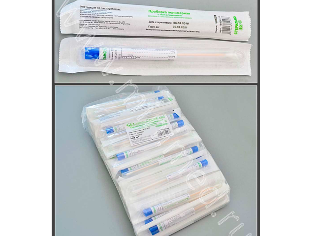 Предназначен для взятия и хранения образцов биологического материала с целью безопасной транспортировки в лабораторию для проведения анализа. Удобен для взятия смывов, в том числе санитарных. Стерильный. Тампон-зонд упакован в ударопрочную ПП-пробирку (12*150 мм). Пробирка снабжена этикеткой, на которой указаны: номер партии, дата стерилизации, срок годности, компания-производитель, компания-поставщик, регистрационное удостоверение, а также предусматривает место для нанесения сведений о пациенте и пробе. Край этикетки скреплен с пробкой, закрывающей пробирку с тампоном - этикетка служит контролем первого вскрытия.