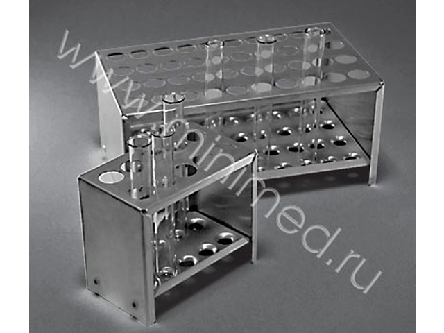 Штатив изготовлен из алюминия, что позволяет стерилизовать их при любом температурном режиме; данный материал обеспечивает легкость и долговечность. Может использоваться в водяных банях. Штатив имеет индивидуальную упаковку. Предназначен для хранения пробирок.