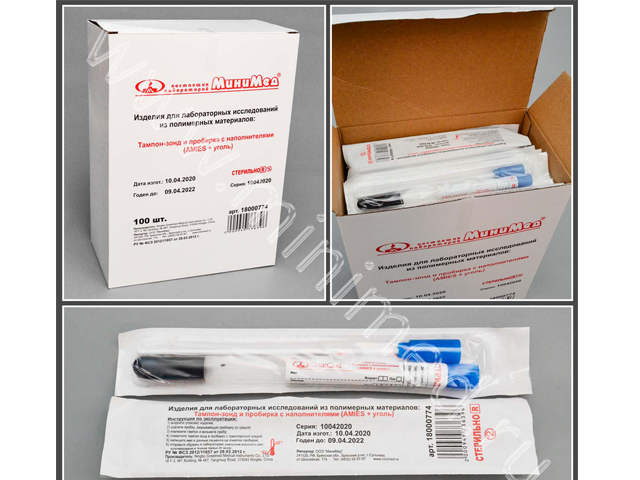 Транспортная среда Эймса представляет собой очередную модификацию базовой транспортной среды Стюарта. Эта среда способна до 3-х дней поддерживать микроорганизмы, такие как Neisseria sp., Haemophius sp., Corynebacteria, Streptococci, Enterobacteriaceae и др., однако наилучшие результаты даёт культивирование в течение первых 24 часов. Уголь поглощает токсичные для бактерий вещества. Тампон-зонд упакован в ударопрочную ПП-пробирку (12*150 мм). Пробирка снабжена этикеткой, на которой указаны: номер партии, дата стерилизации, срок годности, компания-производитель, компания-поставщик, а также предусматривает место для нанесения сведений о пациенте и пробе. Край этикетки скреплен с пробкой, закрывающей пробирку с тампоном - этикетка служит контролем первого вскрытия.