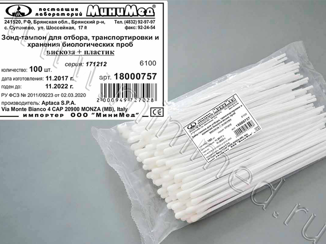 Предназначен для взятия и хранения образцов биологического материала с целью безопасной транспортировки в лабораторию для проведения анализа. Удобен для взятия смывов, в том числе санитарных. Нестерильный.