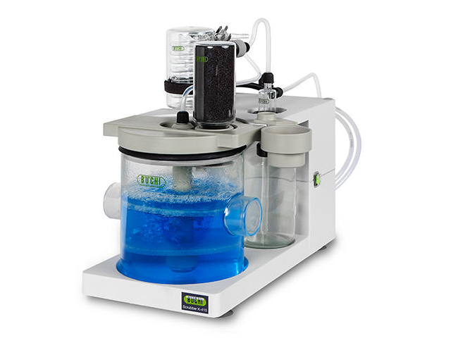 Скруббер с четырьмя ступенями очистки обеспечивает максимально безопасную работу. Он защищает оператора и окружающую среду, нейтрализуя ядовитые пары и выделяющиеся при реакциях газы при минимальном расходе охлаждающей воды.