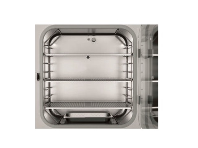 Инкубатор C 150 в исполнении C150-230V-RU для решения повседневных задач культивирования клеток обеспечивает отсутствие контаминации благодаря стерилизации горячим воздухом при 180°C и постоянному значению pH, поскольку используется бездрейфовая инфракрасная измерительная система CO₂.