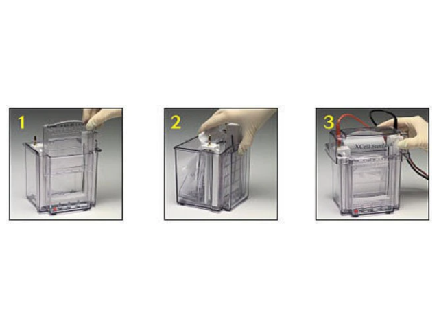 XCell SureLock Mini-Cell надежно удерживает гели с помощью простого клина для натяжения геля. Когда рычаг на клине натяжения геля перемещается вперед в заблокированное положение, создается равномерная горизонтальная сила. Это надежно фиксирует узел гелевого / буферного сердечника в нижней буферной камере. Положительное фиксирующее действие натяжного клина для геля обеспечивает бесперебойную работу геля без утечек каждый раз.