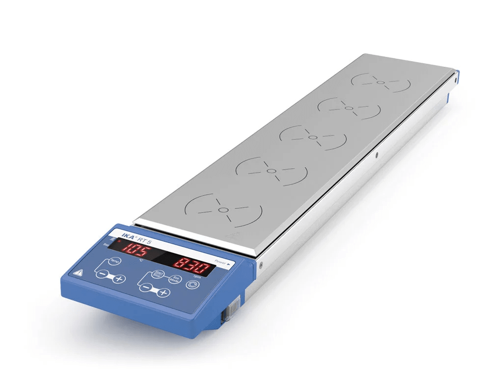 5-местная цифровая магнитная мешалка IKA RT 5 с нагревом предназначена для синхронного перемешивания и нагрева.