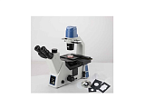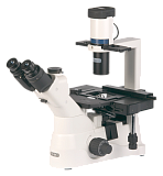 Микроскоп инвертированный биологический флуоресцентный на новом штативе эргономичной конструкции, и усовершенствованной оптической системой, предназначен для исследования культур тканей, осадков жидкостей и химических реакций в специальной лабораторной посуде в проходящем свете в светлом поле, по методу фазового контраста и в свете флюоресценции (люминесценции) при освещении снизу через объектив.