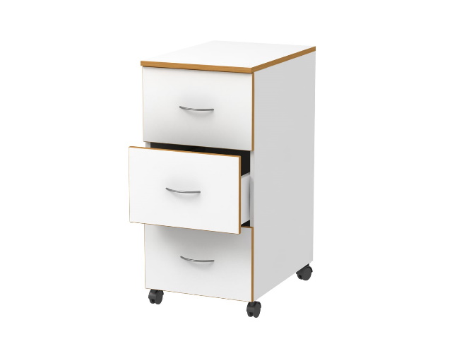 Высокие и низкие подкатные тумбы — выполнены из белой влагозащищенной ламинированной ДСП. Углы усилены кромочным ABS-пластиком. В вариантах с выдвижными ящиками применяются мебельные шариковые направляющие для ящиков полного выдвижения. В ассортименте представлены различные конфигурации: с дверью, 1, 2, 3, 4 выдвижными ящиками.