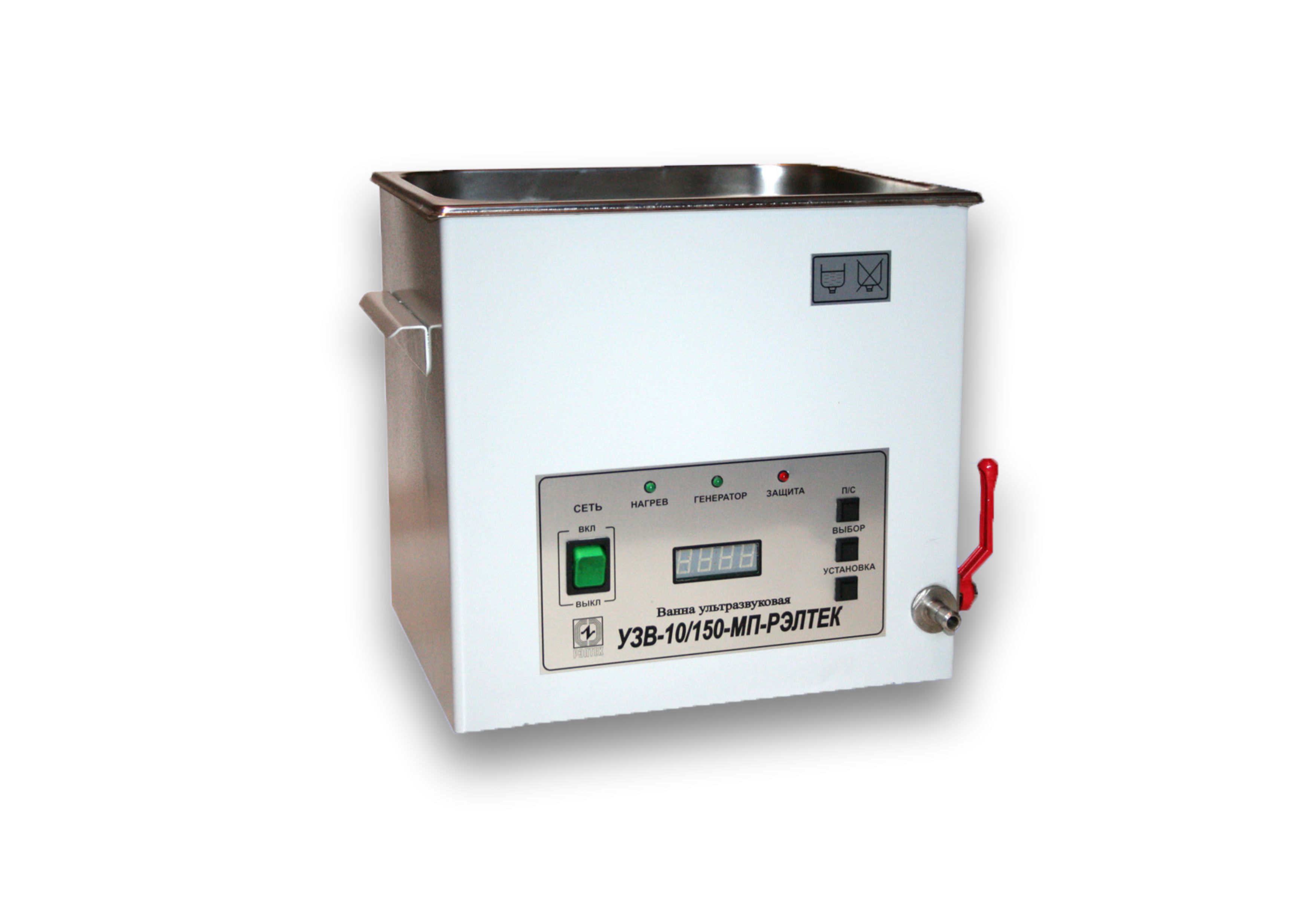 Ультразвуковая ванна УЗВ-10/150 МП (9,5л, 22кГц; микропроцессорная, таймер, нагрев, с крышкой и корзинкой).