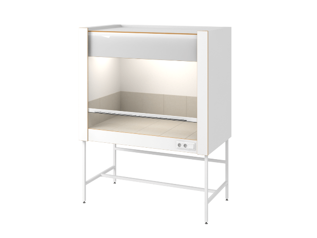 Шкаф вытяжной ШВмс, предназначен для установки муфельных печей, сушильных шкафов и другого термического оборудования. Конструктивно состоит из верхнего вытяжного бокса увеличенного размера и опорного цельносварного усиленного металлокаркаса на регулируемых опорах. Верхняя часть оснащена подъемным ударопрочным стеклом «Триплекс». Стекло с противовесами, фиксируется на любой высоте. Сверху установлен фланец для подключения к системе вытяжной вентиляции диаметром 100 мм.